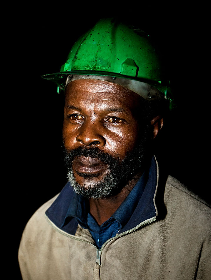 This series comprises portraits of the men that illegally dig for coal deep underground in the abandoned Imbabala coal mine in Ermelo, Gert Sibande District. The air is thick and hot with very little oxygen and no light. Young men desperate to earn a living wage risk their lives everyday for around $22 to extract coal from abandoned coal seams. As these cavities begin to crack and coal pillars are slowly dug away, these young men risk being buried underground with no way out.
